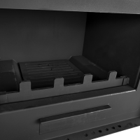 Recuperador de calor a lenha para aquecimento central, porta em vidro serigrafado e com uma potência térmica nominal de 20,8 kW.