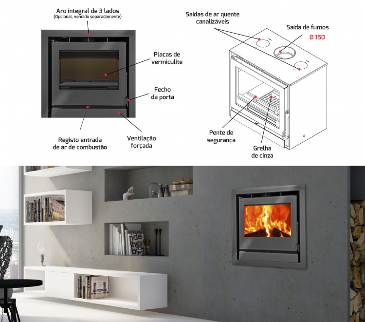 | Consumo Lenha | 1,4 a 2,6 kg/h |