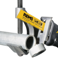 Lâmina de serra especial para serrar em ângulo recto e para desmontagem rápida de tubos de aço com suporte guia, multiplicador de força.