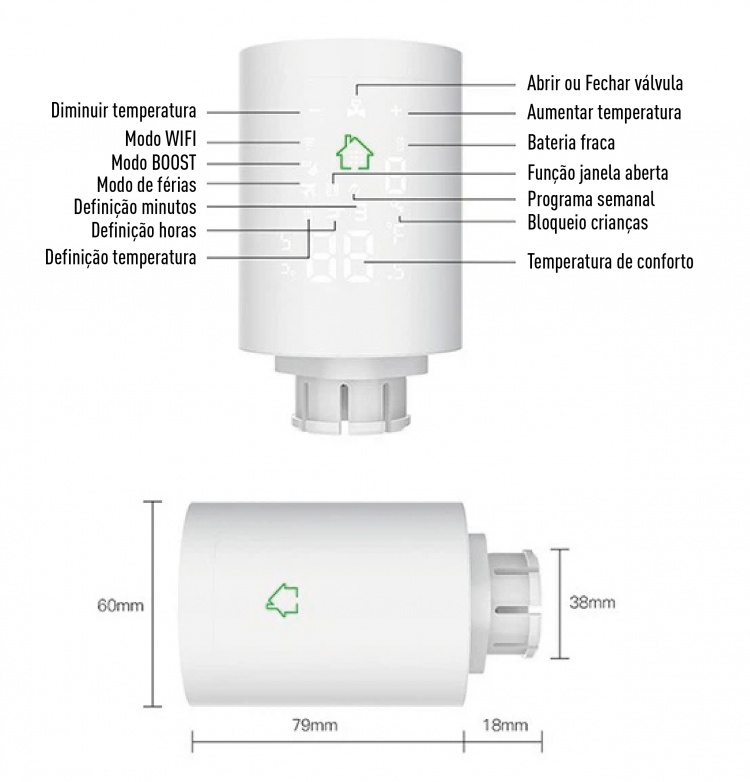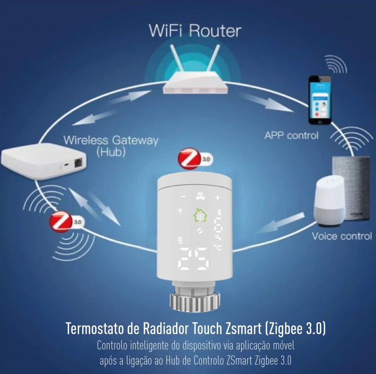 > Para o controlo remoto do termostato é necessário 1 Hub de Controlo ZSmart Zigbee (não incluído), vendido em separado.